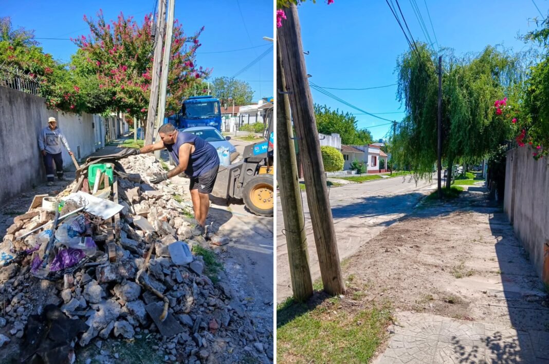 Las imágenes difundidas reflejan el contraste entre la situación previa, con acumulación de residuos y restos de obra en la vía pública, y el estado posterior tras la intervención de los equipos de trabajo. Entre las acciones desarrolladas se incluyeron la recolección de montículos, el retiro de residuos de construcción y la limpieza general de espacios verdes y áreas comunes.