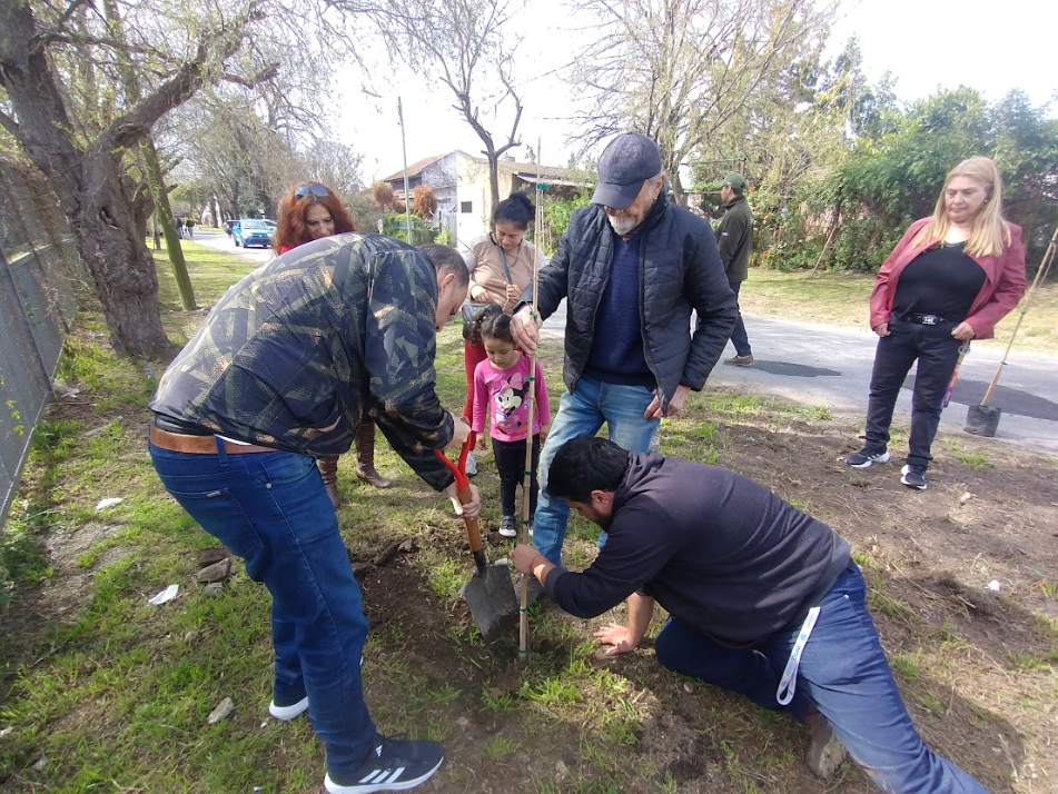 En el barrio de Turdera, el punto de encuentro fue la Plaza Roldán, ubicada en Preti y San Pablo, donde se realizaron trabajos de forestación y embellecimiento de los espacios verdes. Las tareas fueron acompañadas por el equipo del Centro de Gestión del Municipio y vecinos que se sumaron de manera solidaria.